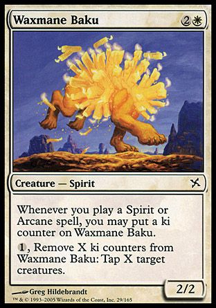 Whenever you cast a Spirit or Arcane spell, you may put a ki counter on Waxmane Baku.