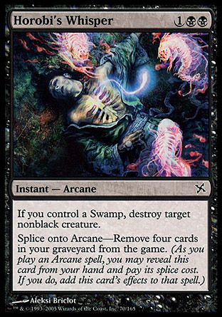 2/1/2005: Horobi's Whisper can target a creature even if you don't control a Swamp, but the spell does nothing.