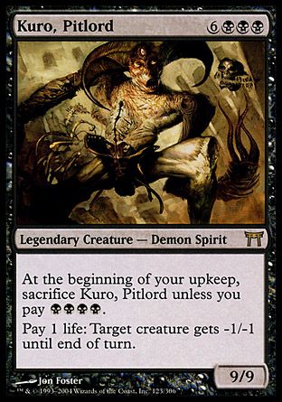 At the beginning of your upkeep, sacrifice Kuro, Pitlord unless you pay {B}{B}{B}{B}.