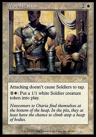 Soldier creatures have vigilance. (Attacking doesn't cause them to tap.)