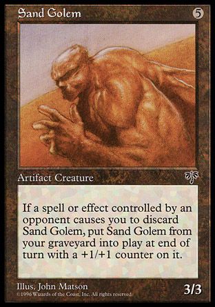 When a spell or ability an opponent controls causes you to discard Sand Golem, return Sand Golem from your graveyard to the battlefield with a +1/+1 counter on it at the beginning of the next end step.
