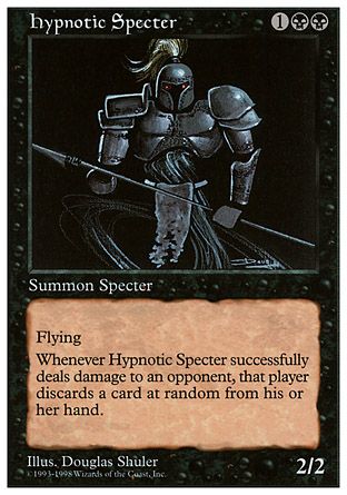 Whenever Hypnotic Specter deals damage to an opponent, that player discards a card at random.