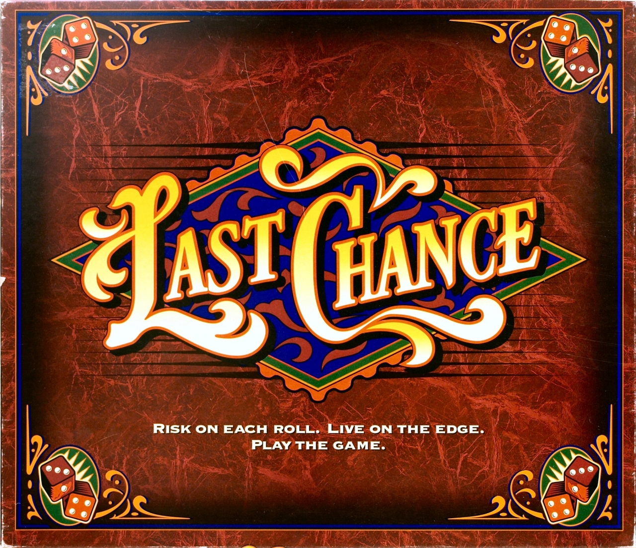 Last Chance is contract Yahtzee with side betting. Each player starts with a stake of chips. One of seven cards is overturned which shows a combination a player must roll on five dice. The tougher the combo, the more the cards are worth if won. Players bid on the chance to roll for the card. Those who don't win the bid can bet for or against the roller. If the roller makes the combo, he gets his bid back plus the card's stated value plus any bets made against him. If he fails, he loses his bid money. Any dice he applied to the combo stay on the card and players bid again on the partially completed card. If a player is low on cash, he can call "last chance" during bidding to win the bid automatically. Failure to make the combo will cost that bidder the game, however. Whoever has the most chips and at least one card by the end of the short card stack wins the game.