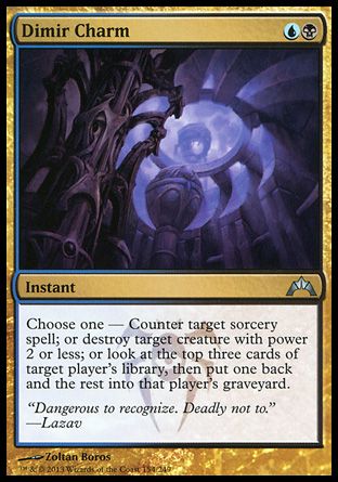 Choose one — Counter target sorcery spell; or destroy target creature with power 2 or less; or look at the top three cards of target player's library, then put one back and the rest into that player's graveyard.