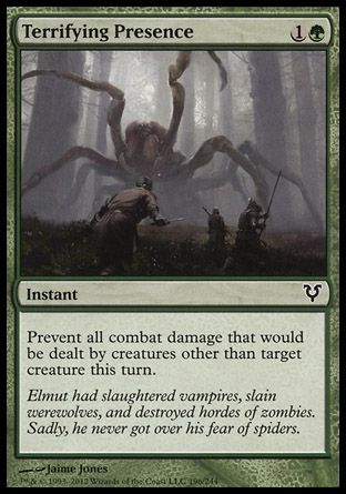 5/1/2012: Although Terrifying Presence doesn't affect the target creature, if that creature is an illegal target when Terrifying Presence tries to resolve, it will be countered and none of its effects will happen. No damage will be prevented.