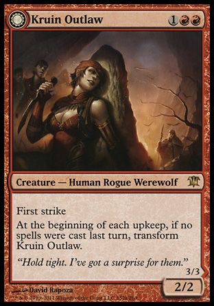 At the beginning of each upkeep, if no spells were cast last turn, transform Kruin Outlaw.