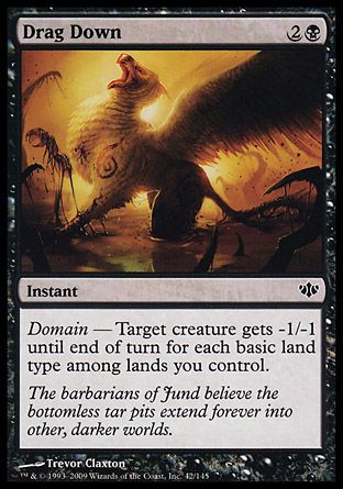 Domain — Target creature gets -1/-1 until end of turn for each basic land type among lands you control.
