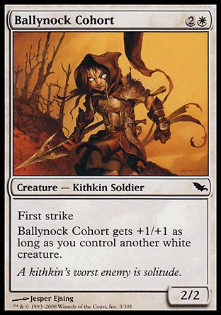 Ballynock Cohort gets +1/+1 as long as you control another white creature.