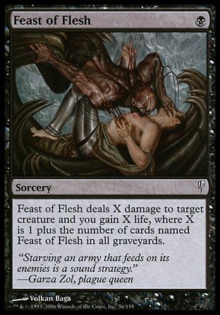 Feast of Flesh deals X damage to target creature and you gain X life, where X is 1 plus the number of cards named Feast of Flesh in all graveyards.